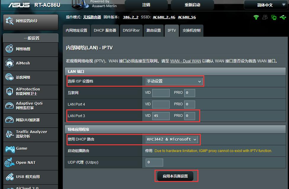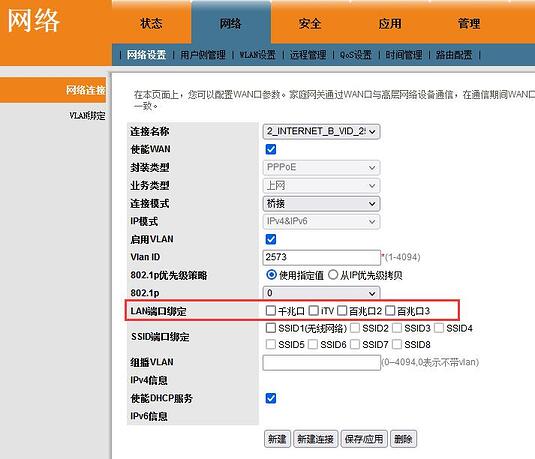 在网络——网络设置——VLAN绑定界面中,添加iptv的vlan端口绑定。
