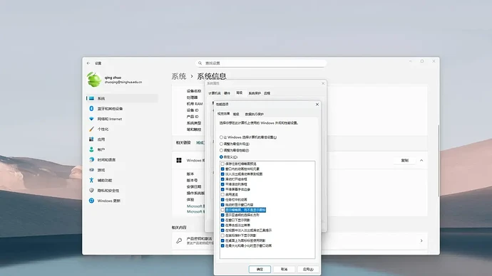 根据博文对于第二种方案的介绍,选择使用鼠标右键点击计算机图标,选择 属性 设置。在第一个系统信息对话框中,找到高级系统设置菜单。在弹出的对话框中,找到高级 页面,点击 设置按钮。然后,在接下来的对话框列表中选择启动速览以及显示缩略图,将两者选项关闭。现在看到,文件管理器中的文件夹背景变黑的问题就解决了。